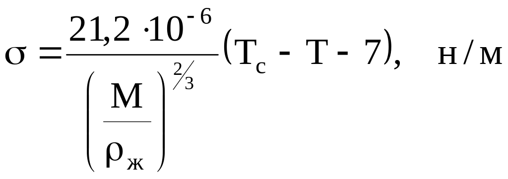 межфазное натяжение на границе пар-жидкость (мн/м) определяется по уравнению Этвеша [4]
