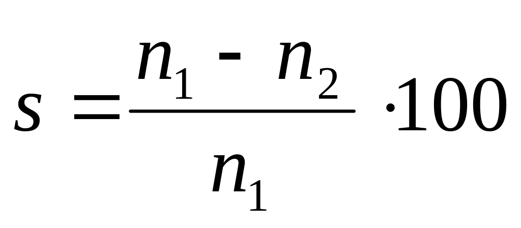 Электродвижущая сила роторной обмотки зависит от относительной скорости пересечения полем проводников ротора, которую принято называть скольжением асинхронной машины. Скольжение s, %, определяется по формуле (3.2)