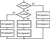 Если условие1 выполняется, то исполняется Блок инструкций 1, в противном случае проверяется условие2. Если оно выполняется, то исполняется Блок инструкций 2, в противном случае Блок инструкций 3.