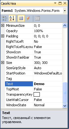 Окно отражает поведение данного объекта для текущей формы Form1.