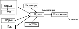 Приложение (например, Demo) имеет несколько файлов, объединенных в проект: