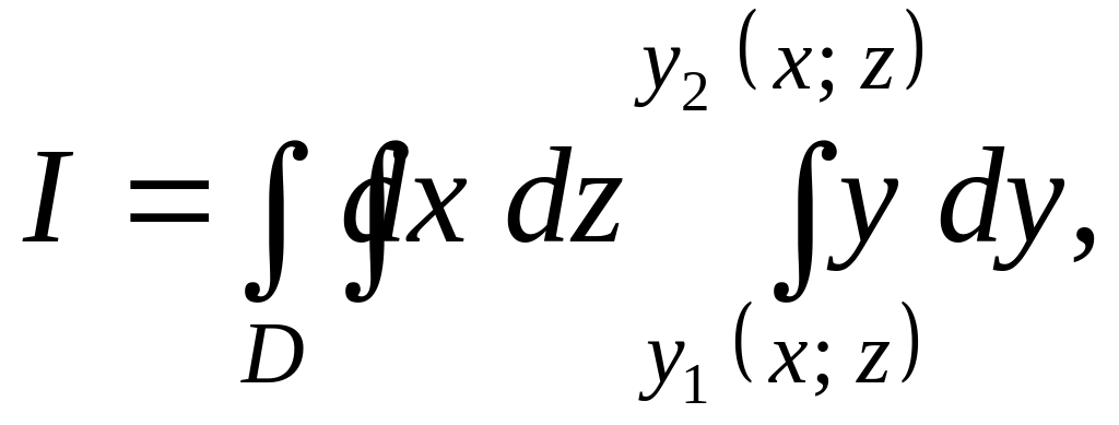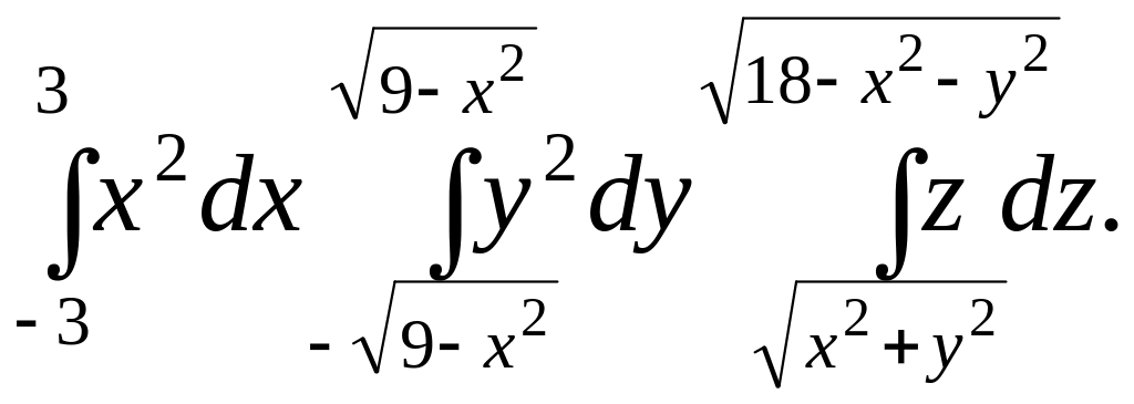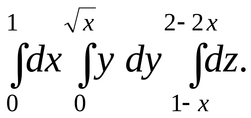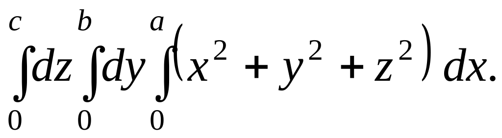 снизу и сверху.Вычислить сначала внутренний интеграл по переменной z, считая x и y постоянными; от полученного результата вычислить средний интеграл по переменной
