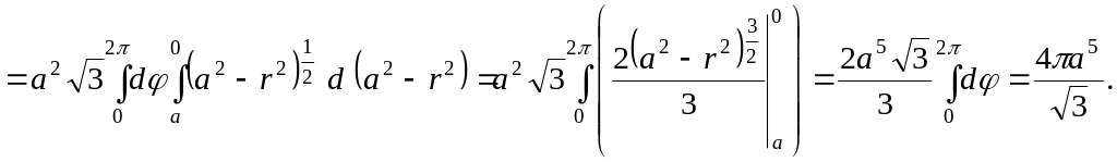 Данный интеграл можно вычислить с помощью повторного интегрирования в прямоугольных координатах, но эти вычисления представляют собой определенную сложность.