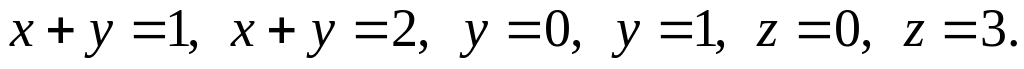 Указание. Вспомним из аналитической геометрии в пространстве, что геометрические образы, соответствующие уравнениям, следующие:
