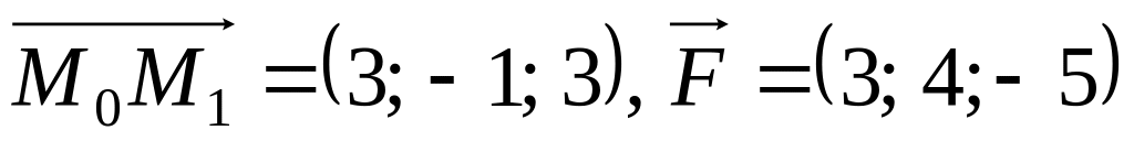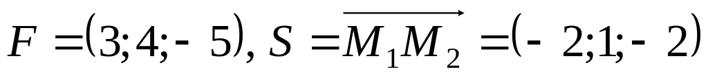 а) величину роботи, яку виконує сила при прямолінійному переміщенні матеріальної точки з початку в кінець вектора, де ,