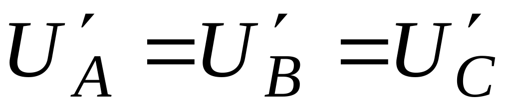 При з’єднанні котушок “зіркою” фазні напруги будуть: