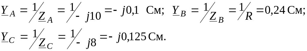 Визначимо опори і провідності фаз споживача в комплексній формі: