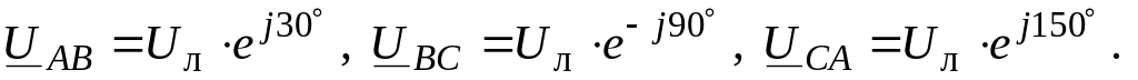 У комплексній формі фазні напруги записують так (початкову фазу напруги UА приймають рівною нулю):
