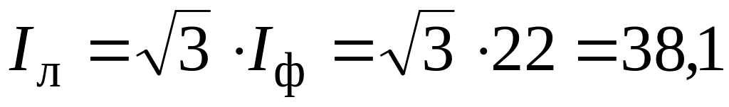 При з’єднанні котушок “трикутником” фазні напруги будуть однаковими: Uф=Uл=220 В.