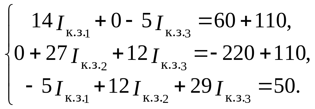 Решив систему уравнений, определим контурные токи в режиме короткого замыкания