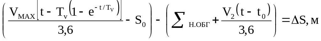 Условие вычисления пути торможения ST, обеспечивающего возврат на свою полосу в результате прекращения обгона можно записать в виде