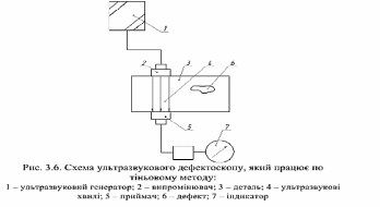 ультразвуковий метод – ґрунтується на властивості ультразвуку відбиватися від границі двох середовищ, в тому числі і від дефекту . Відрізнять два методи ультразвукової дефектоскопії : просвічуванням