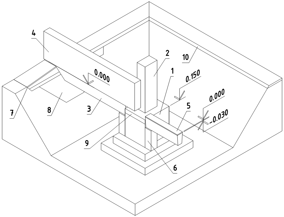 Наружные и внутренние стены одноэтажных промышленных зданий устанавливают на фундаментные балки, при этом нагрузка от самонесущих стен передается на фундаменты колонн. Для опирания фундаментных балок у подколонника к стенкам стакана устраивают бетонные приливы или на выступы Нижележащей плиты устанавливают специальные столбики. Балки устанавливают так, чтобы верхняя их плоскость оказалась на отметке -0,030 (рисунок 10). Поверх фундаментных балок укладывают гидроизоляцию из цементно-песчаного раствора или из двух слоев рулонного материала на мастике, толщина гидроизоляции 30 мм. Зазоры между фундаментными балками и колоннами заполняют бетоном.
