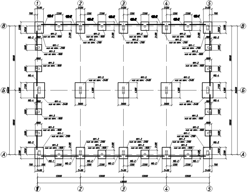 5.4 Схема расположения элементов фундаментов (Н1=Н2)