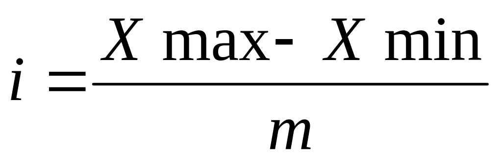 Якщо виконується групування з рівними інтервалами, його величина визначається за формулою: