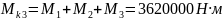 М = М1 + М2 + М3 = 1940000 Н·м