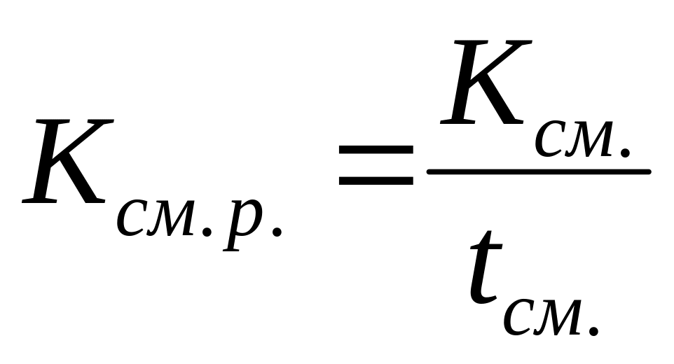коэффициент использования сменного режима работы оборудования определяется делением достигнутого в данном периоде Ксм. на продолжительность смены (tсм.):