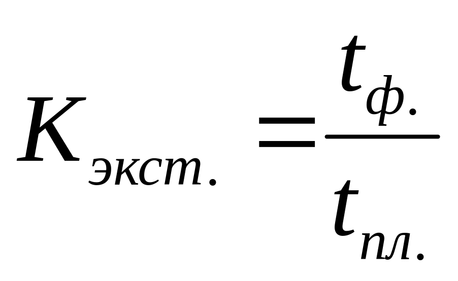 коэффициент экстенсивного использования оборудования - отношение фактического количества часов работы оборудования к количеству часов его работы по плану (нормативу):