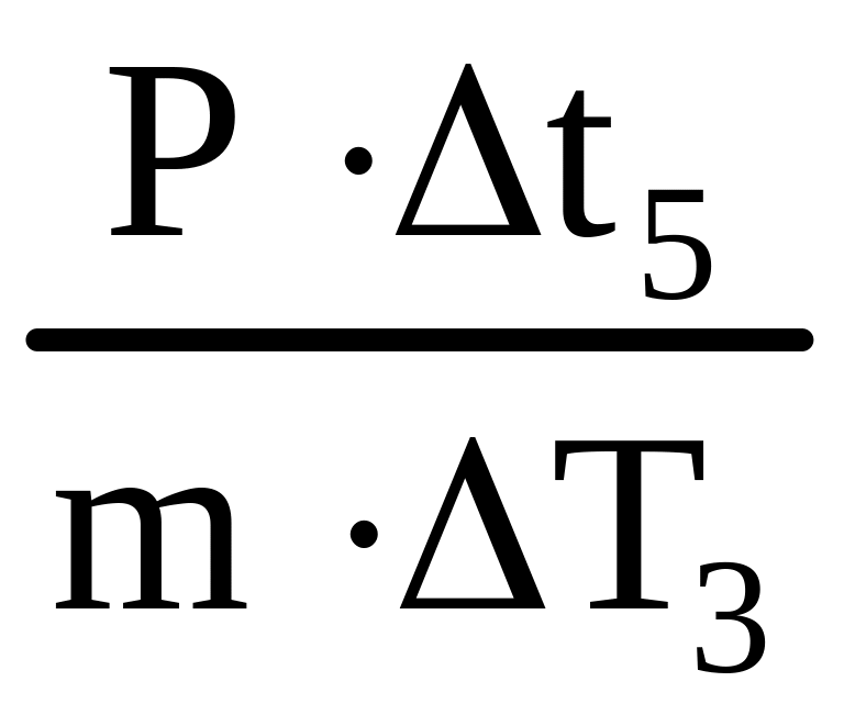 На рисунке представлен график зависимости абсолютной температуры T воды массой m от времени t при осуществлении теплопередачи с постоянной мощностью P. В момент времени t = 0 вода находилась в твердом состоянии. Какое из приведенных ниже выражений определяет удельную теплоёмкость воды по результатам этого опыта?