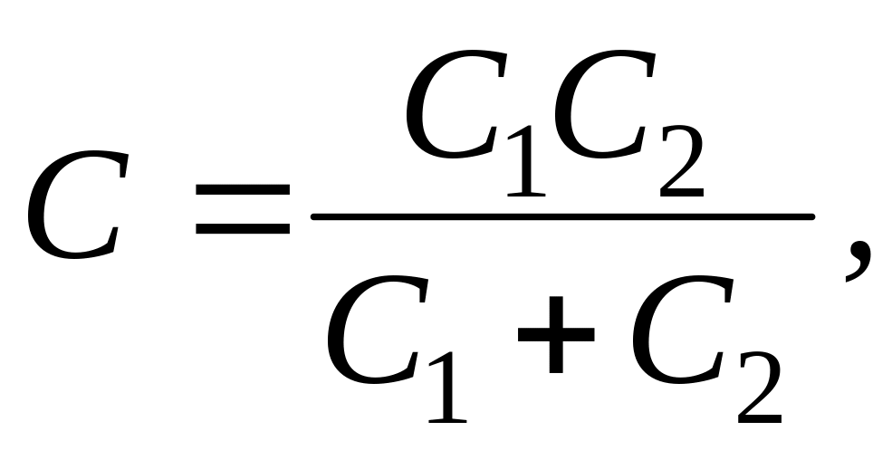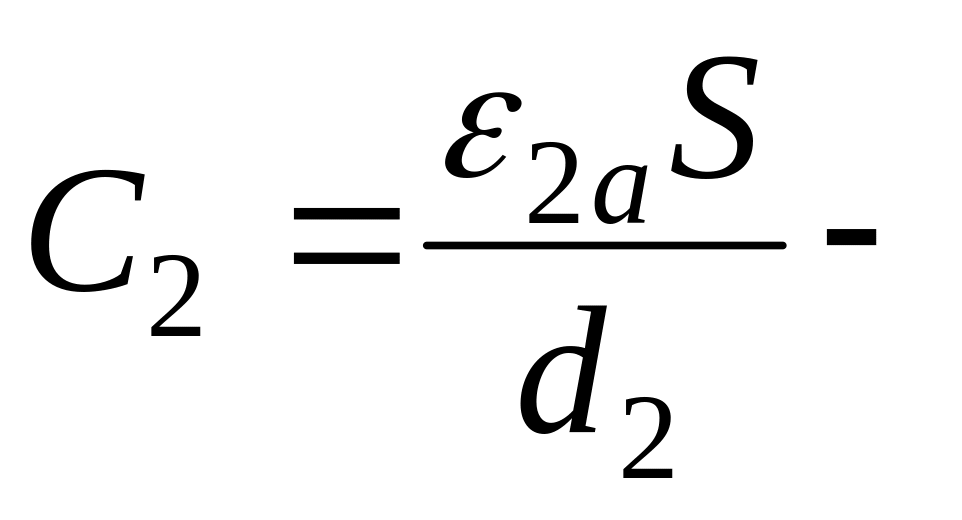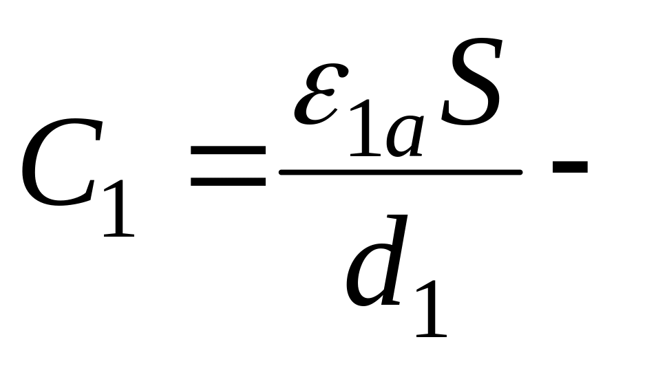 Ёмкость такого конденсатора определяется как эквивалентная двух последовательно соединенных ёмкостей: