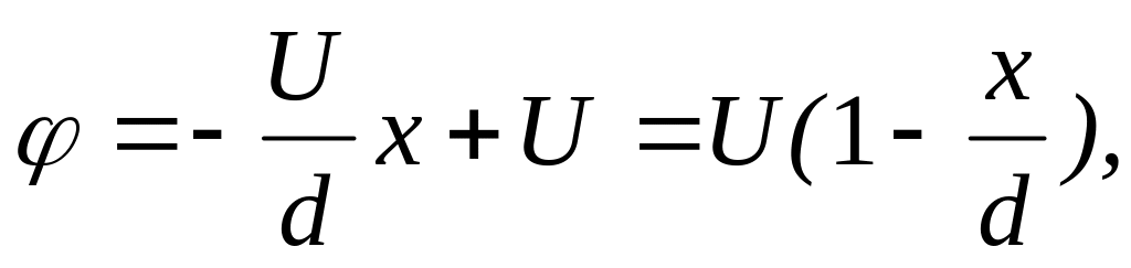 пластины равен нулю, а левой равен U,