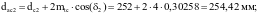 Фактическое значение de2 = 252 мм отличается от номинального значения по ГОСТ 12289-76 на 0,8%. Согласно [4, стр. 49] фактическое значение не должно отличаться от номинального более чем на 2%.