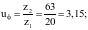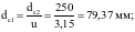 u=i – передаточное отношение для конического одноступенчатого редуктора;