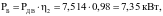 – передаваемая мощность: P1 = РБ = 7,35 кВт;