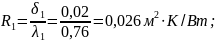 визначаємо термічні опори шарів огороджувальної конструкції за формулами
