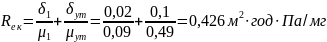 – опір паропроникненню частини огороджувальної конструкції від внутрішньої поверхні до зони початку конденсації, , що визначається за формулою