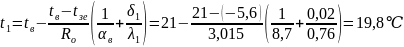 Визначаємо температуру на перетинів шарів матеріалів огороджувальної конструкції, , за формулами: