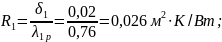Визначаємо термічні опори шарів огороджувальної конструкцій за формулами: