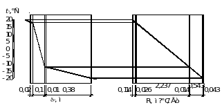 Побудова графіку розподілу температури по товщині огородження виконується і наступній послідовності: