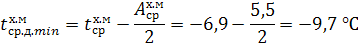 Температуру середніх добових мінімумів самого холодного місяця визначаємо за формулою