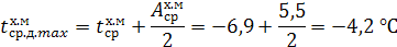 Температуру середніх добових максимумів самого холодного місяця, оС, визначаємо за формулою