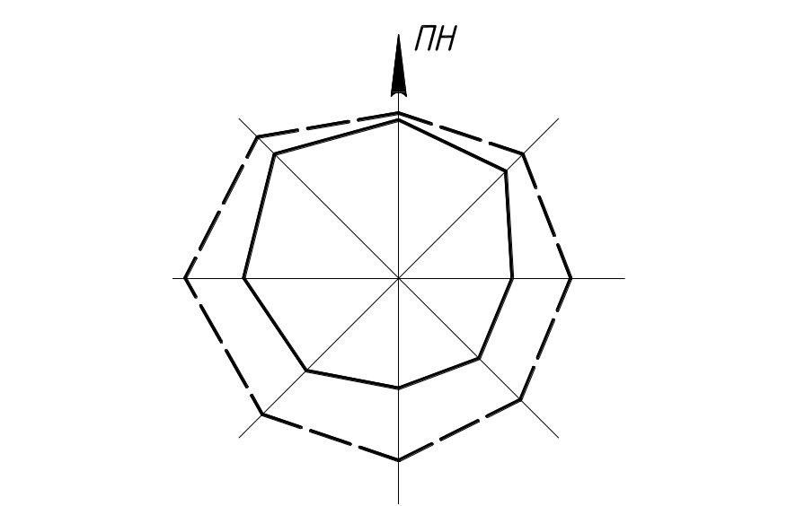 Використовуючи значення наведенні у дод.4 [2] будуємо розу вітрів міста будівництваза повторюваністю вітру.