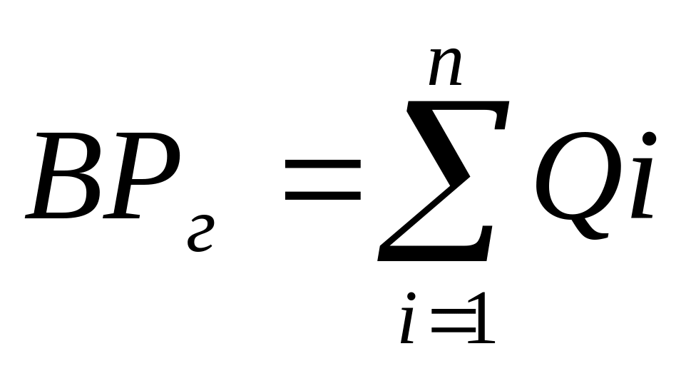 Валовая выручка от реализации продукции (ВРг) за некоторый период (год) определяется из выражения: