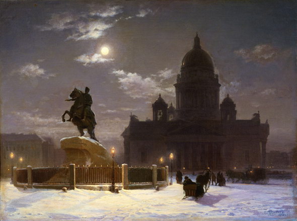 Поступив на навчання до Петербурзької Академії Мистецтв. Сумує за Сибіром. Одна з перших досконалих робіт-«Пам’ятник Петру І » |