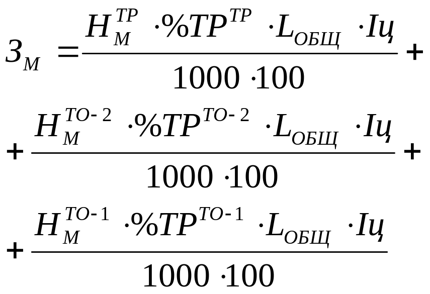 где: НМX- норма затрат на материалы на тысячу км пробега по соответствующему виду воздействия, руб; %ТР X- процент трудоёмкости определённого вида воздействий выполняемых на участке;