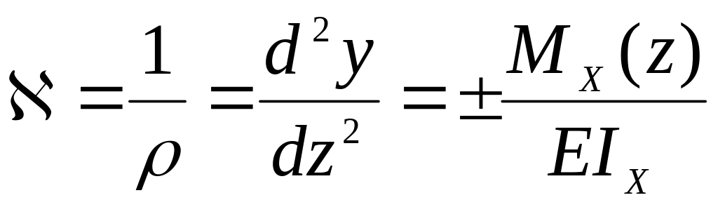 Если ось направлять вниз, то у кривизны и изгибающего момента будут различные знаки (рис. 5.1), и в выражении (5.1) следует принимать знак минус.