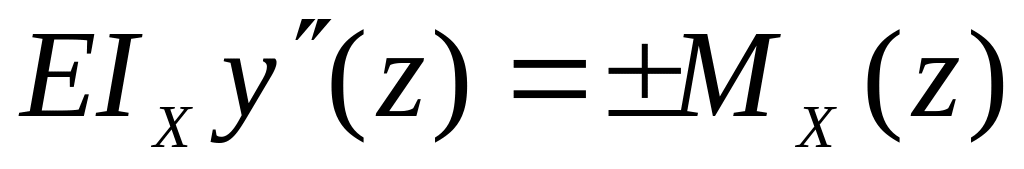 Выбор знака в выражении (5.1) зависит от выбора направления оси и правила знаков для изгибающего момента. Так, например, для случая, когда ось направлена вверх (рис. 5.1), положительному изгибающему моменту соответствует положительная кривизна и наоборот, отрицательному изгибающему моменту - отрицательная кривизна. Тогда в уравнении (5.1) следует принять знак плюс.
