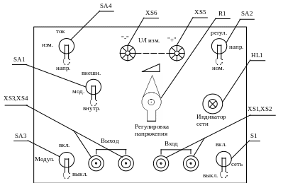 Расположение органов управления на лицевой панели лабораторного блока показано на рисунке .