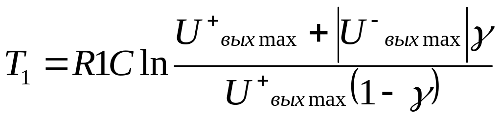 5. Длительности импульса и паузы на выходе мультивибратора определяются соответственно следующими выражениями: