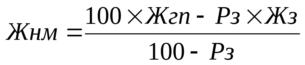 Пример: Массовая доля жира нормализованного молока до внесения закваски, приготовленной на обезжиренном молоке, рассчитывают по формуле: