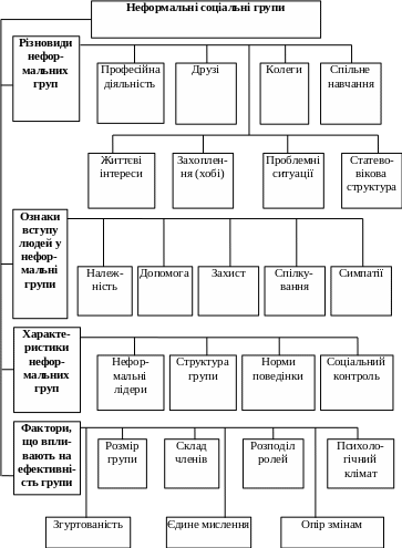 Неформальні соціальні групи – це вільно утворені малі соціальні групи людей, які вступають у систематичну взаємодію за інтересами для досягнення певних цілей. Така група дає людині почуття захищеності, від групи вона чекає підтримки, допомоги у вирішенні своїх задач. Неформальні групи утворюються не керівником, а членами організації у відповідності до їх симпатій, інтересів тощо.