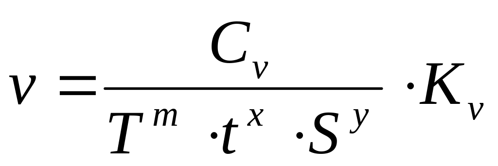 Значення коефіцієнту Сv, показники ступеня і середнього значення періоду стійкості Т для різних інструментів приведених в табл. 49 (стор.296).