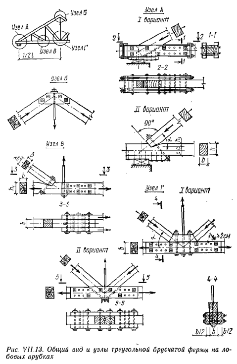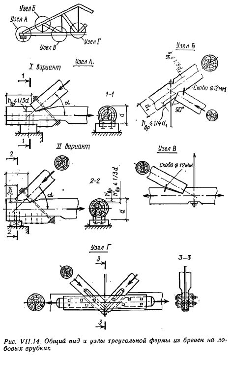 - •Ферми трикутного обрису із брусів і колод з вузловими з'єднаннями на лобових врубках.