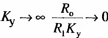 Основные свойства операционных усилителей. Универсальный ОУ является усилителем постоянного тока с высоким коэффициентом усиления (Ку = 103...106), высокое входное сопротивление (RBX -> ∞) и низкое выходное (Явых —>0). К основным свойствам идеального ОУ следует также отнести широкую полосу частот, начиная с частоты f = 0 и постоянство амплитуды усиливаемого сигнала во всем диапазоне частот.