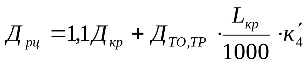 Количество дней простоя автомобиля в ремонте и ТО за цикл определяется