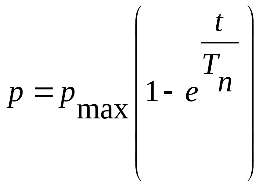 Нарастание давления газа в пневмогидроаккумуляторе происходит по закону, близкому к апериодическому закону. По такому же закону нарастает и гидравлическое давление в гидроаккумуляторе и полости ГЦ, то есть